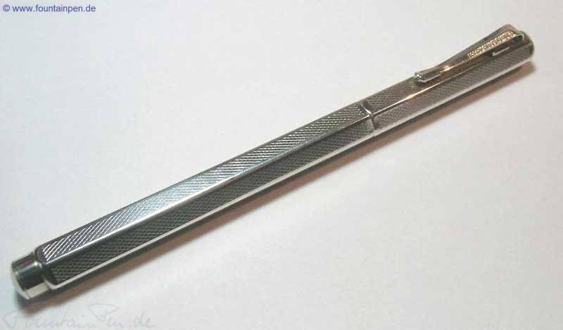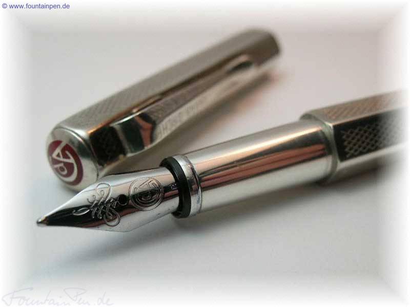 Der Füllfederhalter wird entweder mit Konverter oder Patrone befüllt und besitzt eine rhodinierte Stahlfeder.