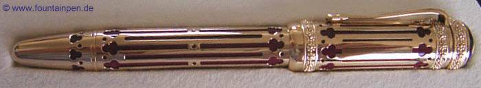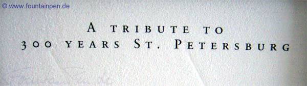 ![]() Am 16. Mai 2003 wurde pünktlich zum 300. Geburtstag der Stadt St. Petersburg dieses spezielle Set in einer Limitierung von nur 100 (!) Stück herausgebracht. Es besteht aus den beiden Füllfederhaltern "Peter the Great" und "Catherine the Great", die bereits 1997 in der Patron of the Arts Edition erschienen sind. Diese 100 Stück wurden damals jedoch nicht verkauft und für diese spezielle Edition reserviert. Auch von der 888 Edition gab es ein Set, das auf 50 Stück limitiert ist. ![]() ![]() ![]() ![]() ![]() Fotos:O.W. |