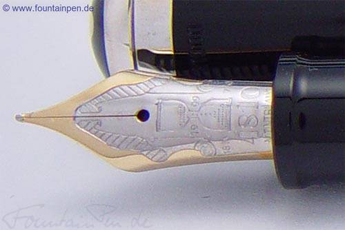 Die Feder besteht aus 18 kt Gold mit einer zisilierten Sanduhr.