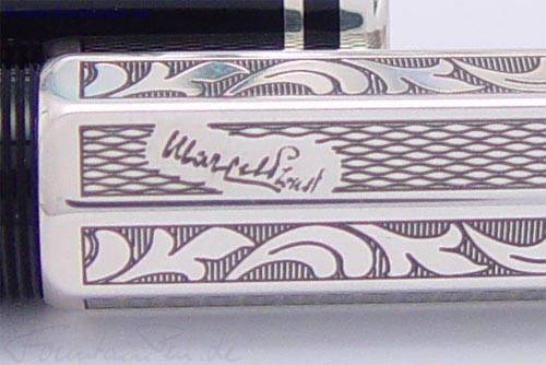 Der sechseckige Korpus besteht aus 925er Sterling-Silber mit gravierten Elementen und der Unterschrift von Marcel Proust.