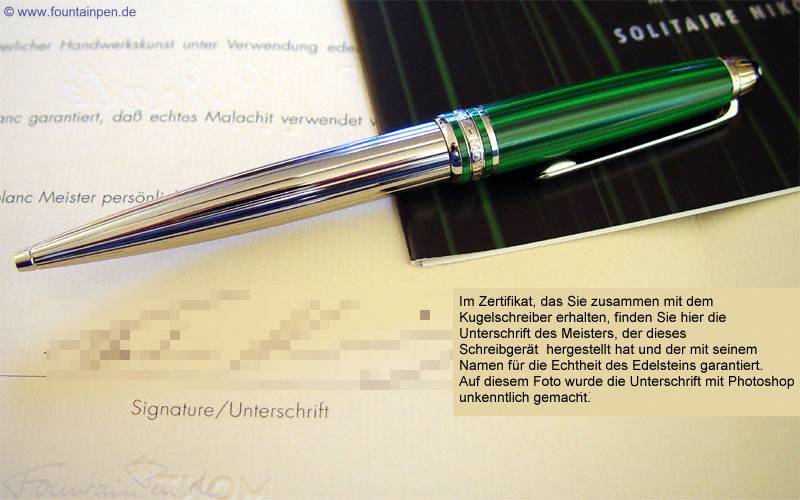 Hier haben Sie die Möglichkeit, einen der letzten Montblanc Kugelschreiber aus der Nikolai I. Platinum Edition zu ersteigern. Da Malachit inzwisachen nicht mehr so einfach zu bekommen ist, werden diese Schreibgeräte nicht mehr hergestellt. Der Neupreis beträgt derzeit 638.- Eur. Die Kappe besteht aus dem Edelstein "Malachit" dem typischen Stein für die russische Zarenfamilie. Der Korpus ist platiniert und besitzt eine edle Faden-Guilloche. Sie erhalten das Schreibgerät in einer speziellen Nikolai I. Verpackung zusammen mit dem Echtheitszertifikat und dem Service-Guide. Der Kugelschreiber ist neu und wurde nur für diese Fotos kurz aus der Verpackung genommen. Sie bezahlen nur die tatsächlich anfallenden Versandkosten in Höhe von 6,70 für ein versichertes Paket (die Post hat leider die Preise für Pakete angehoben). |